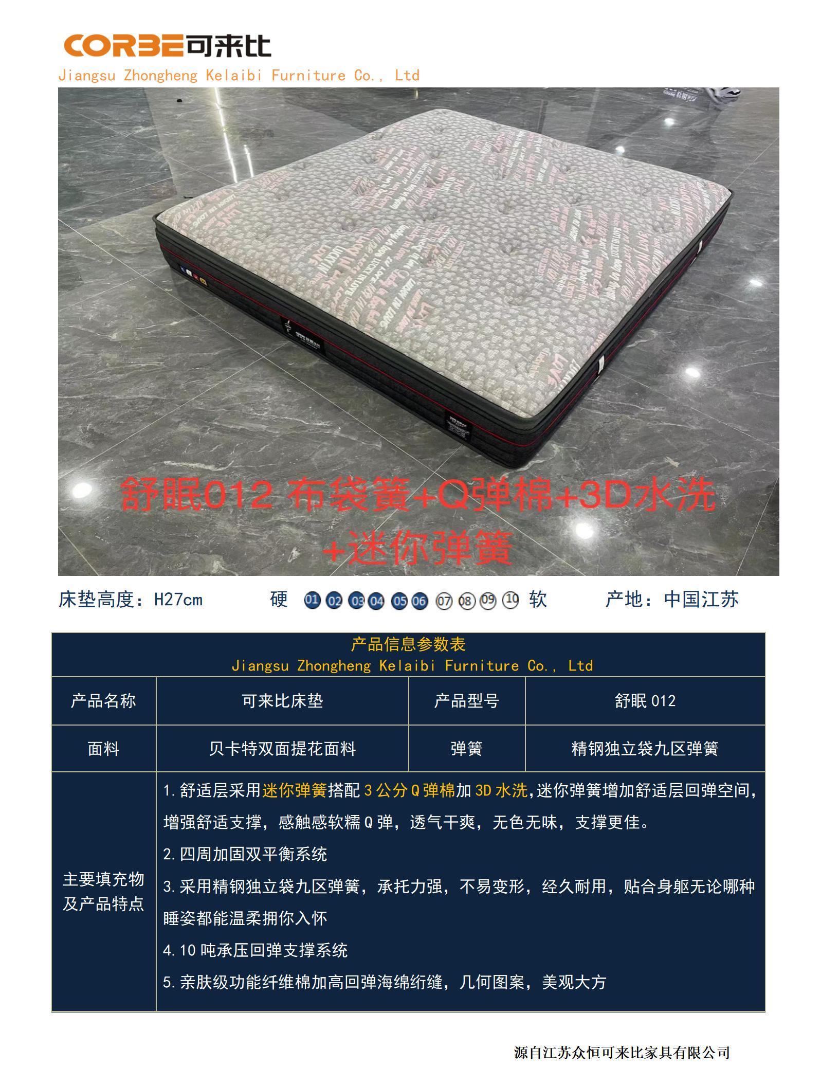 舒眠012布袋簧+Q彈棉+3D水洗+迷你彈簧